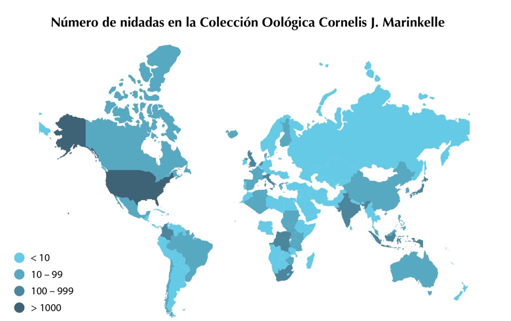 A diferencia de las otras colecciones del Instituto, la fortaleza de esta colección es que ella preserva material proveniente del mundo entero. De esta manera, en la colección hay nidadas de 1319 especies que representan 155 familias de aves y que provienen de 113 países diferentes. Este acervo la convierte en la mayor colección oológica en Latinoamérica.