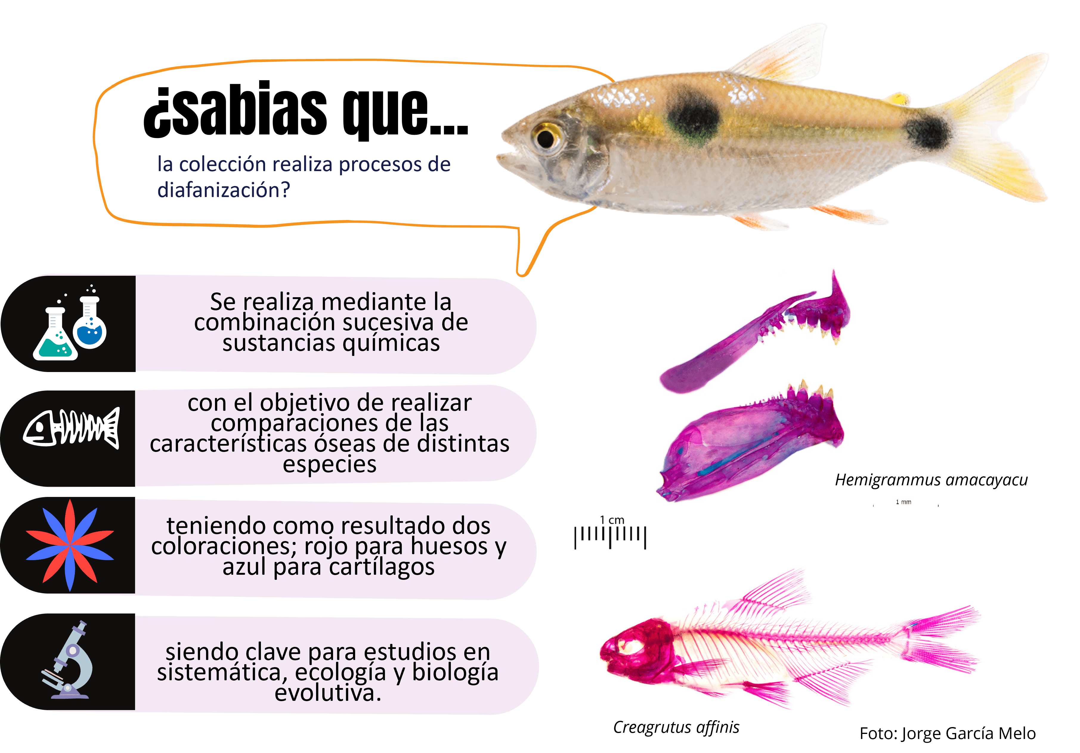Bióloga de la Universidad de la Amazonia, con interés en ecología y taxonomía de peces dulceacuícolas. Cuenta con experiencia en manejo de diferentes métodos de campo para estudios de diversidad de peces en ecosistemas acuáticos amazónicos y altoandinos. Cuenta con experiencia en curaduría, manejo y conservación de colecciones ictiológicas al igual que procesamiento de material biológico, toma de muestras de tejido en campo y protocolos de diafanizados. Ha realizado cursos en ciencia ciudadana y ecología de ríos, tras la implementación de aplicaciones enfocadas en el conocimiento y registro de la biodiversidad local, así como la identificación y cuantificación de problemáticas por contaminación en las redes hídricas.